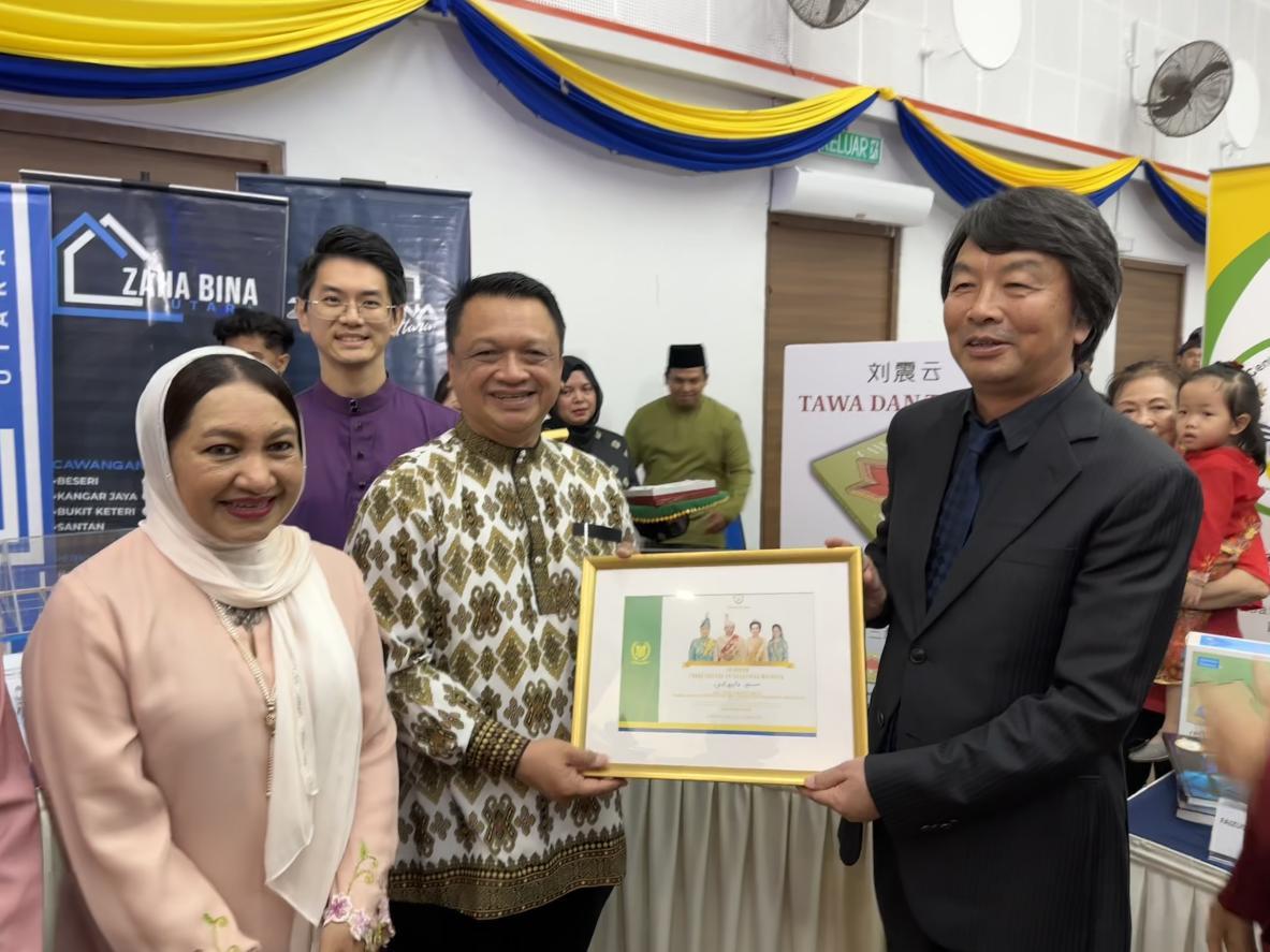 颁奖仪式上,王储Tuanku Syed Faizuddin ,Raja Muda Perlis为刘震云颁授奖项。